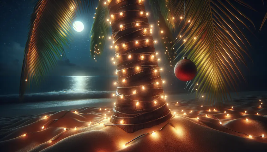Tropical Christmas Eve under palm trees draped in lights: planning tips for lighting, safety, menus, decor and ambiance for a memorable coastal celebration. Now
